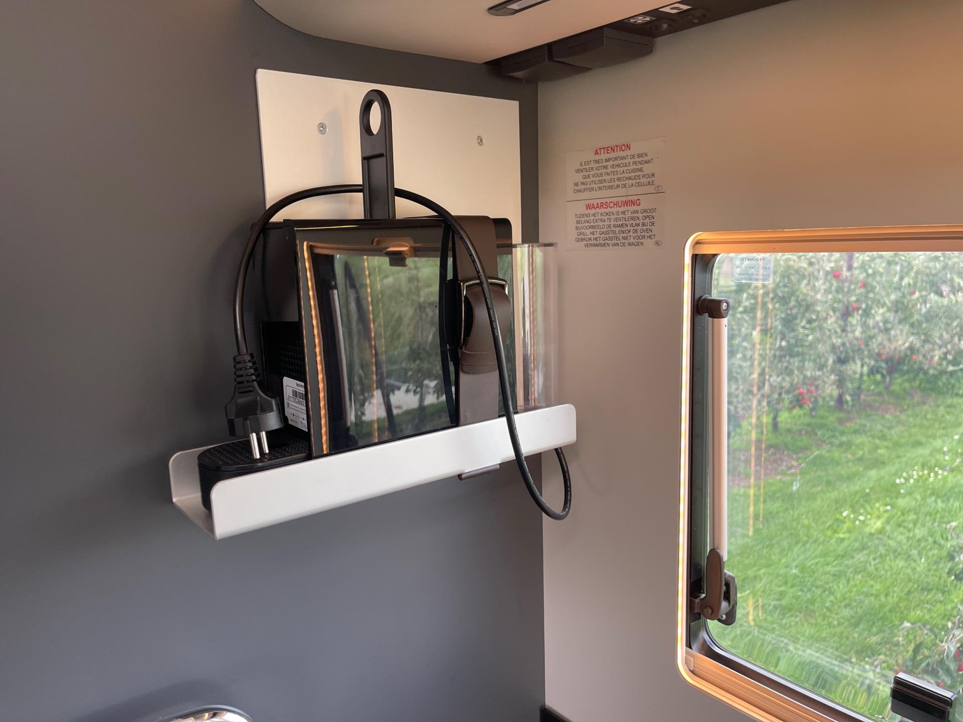 Chrome rand om uitstroomopeningen in dashboard, Elektrische vloerbijverwarming + transfo, Truma Combi 6E, Koffiezetapparaat met houder, Reservewiel met houder, Buitenspiegels in kleur gespoten, LED koplampen en mistlampen voor, Luifel, Draadloze telefoonlader bij automatische airco