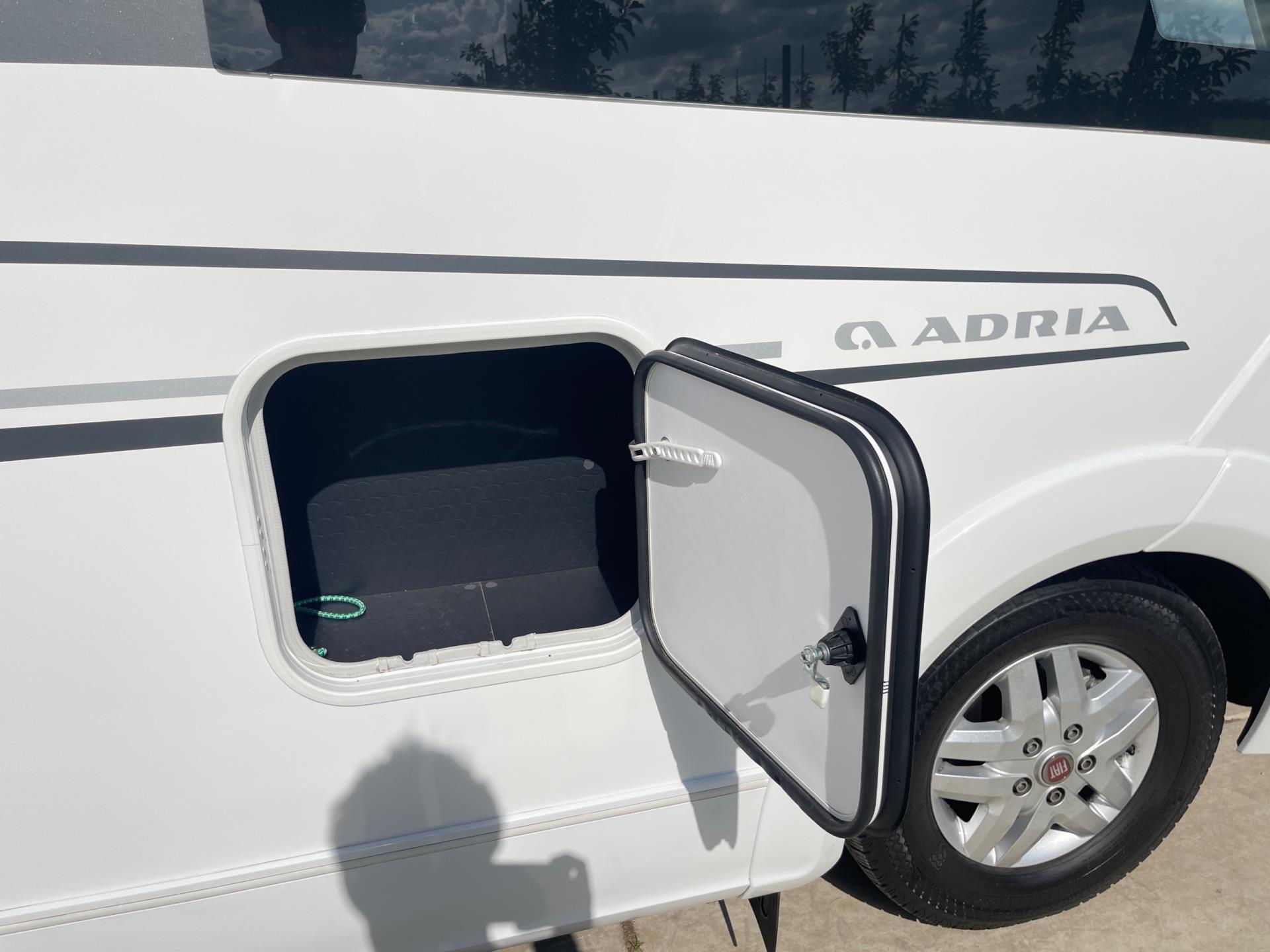 Elektrische lift in garderobe kast onder bed, Uittrekbare zonneschermen bestuurder en passagier, Dakmontage Truma Aventa Comfort 2400 Airconditioning, Gasfles sensoren tbv MACH, Adria App-MACH Plus (android/iOS), Gasfilter Truma, Decoratief set Sophisticated Classic, Bekleding Arno, EVOPORE speciaal schuim matras, Spatlappen achter, Spatlappen voor, Mea alarm Thitronic 9 sensoren en tracking device