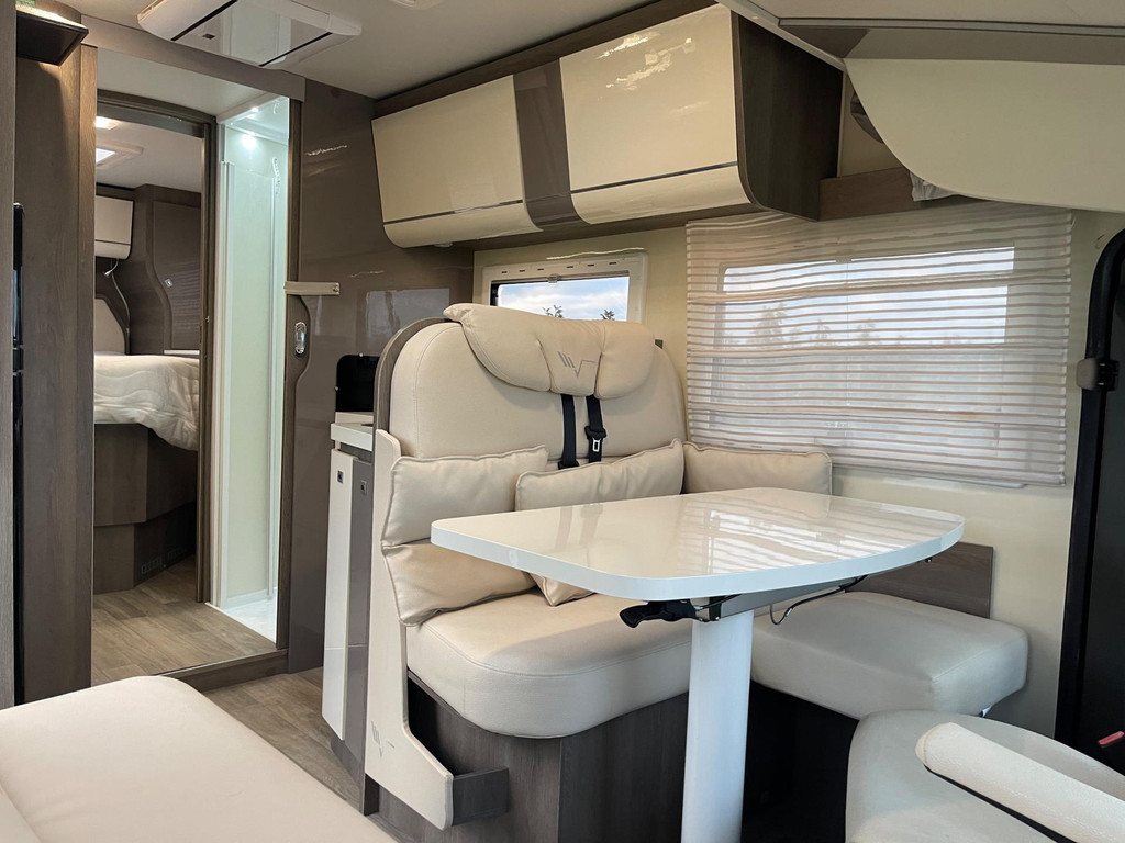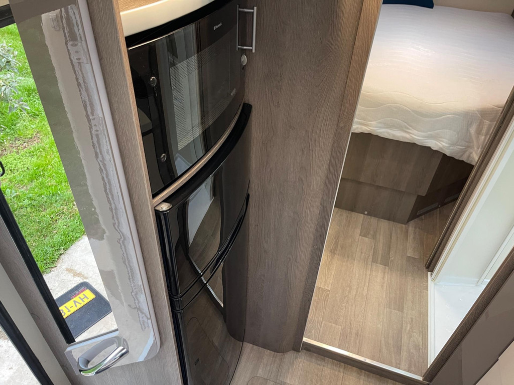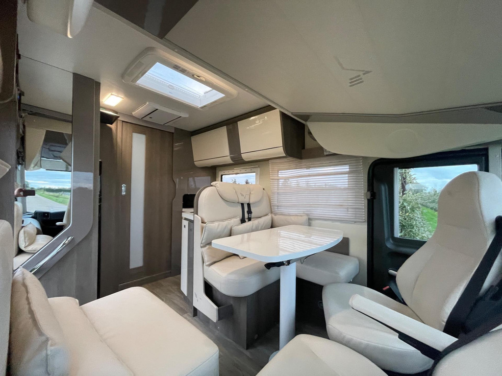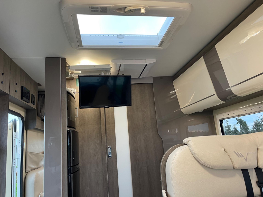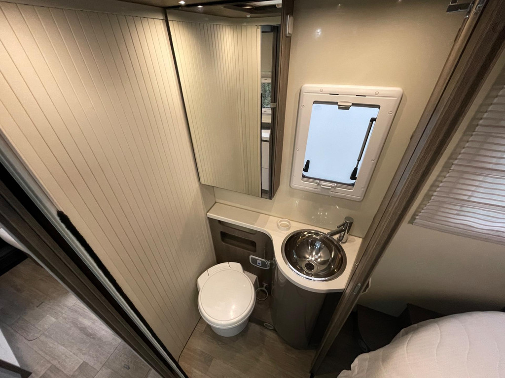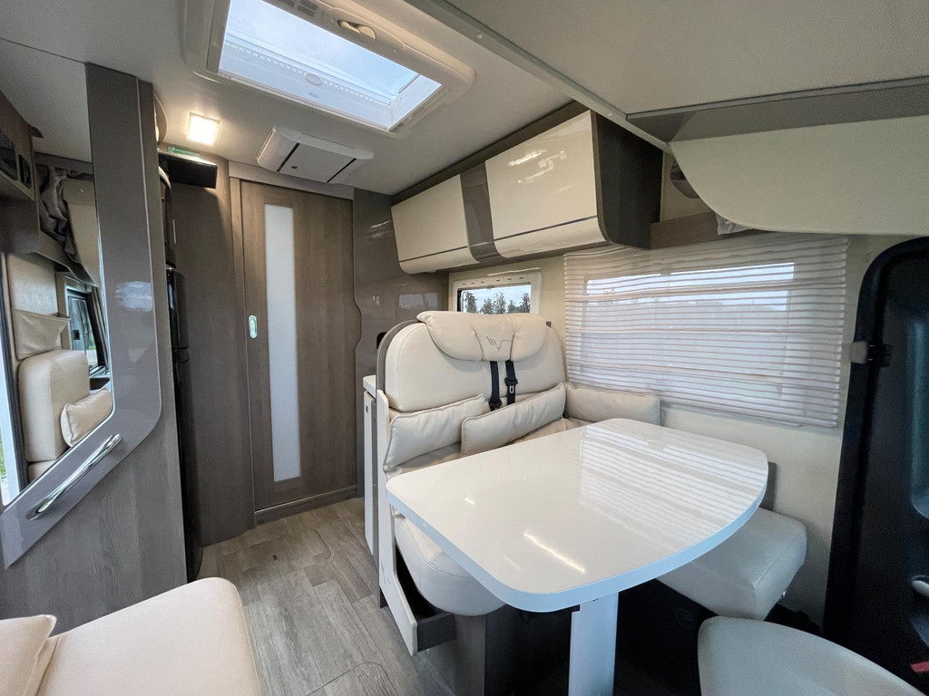 Airco woongedeelte, witte leren bekleding, televisie, schotel, zonnepaneel, fietsenrek, oven, xl koelkast + vriesvak, centrale deurvergrendeling, geurventilatie toilet, luifel, Zenec audiosysteem (nieuw) met achterrijcamara en Apple CarPlay. Indeling van de camper Zeer moderne interieur: Slaapgedeelte, Queens bed, aan beide zijde hangkasten + nachtkastjes met opbergruimte. Leeslampjes + sfeerverlichting achter het bed. Opbergruimte onder het bed. Schuifdeur om slaapgedeelte af te sluiten. Aparte douche en toilet. Schuifdeur tussen woon en wasgedeelte. Keuken 2x apothekerkasten, boven en onderkasten + besteklade, 3 pits gas toestel. Xl koelkast + extra vriesvak, gasoven. Woongedeelte: 2 banken met leren kussens, 2 verstelbare stoelen + verstelbare tafel. Verduisterend schuifsysteem voor ramen + extra zonsverduistering tijdens het rijden. 2 opbergvakken in de vloer. Hefbed met verlichting. Camper is voorzien van overal mooie sfeerverlichting. XL garage. Buitenverlichting, luifel en stopcontact buiten incl. Tv aansluiting