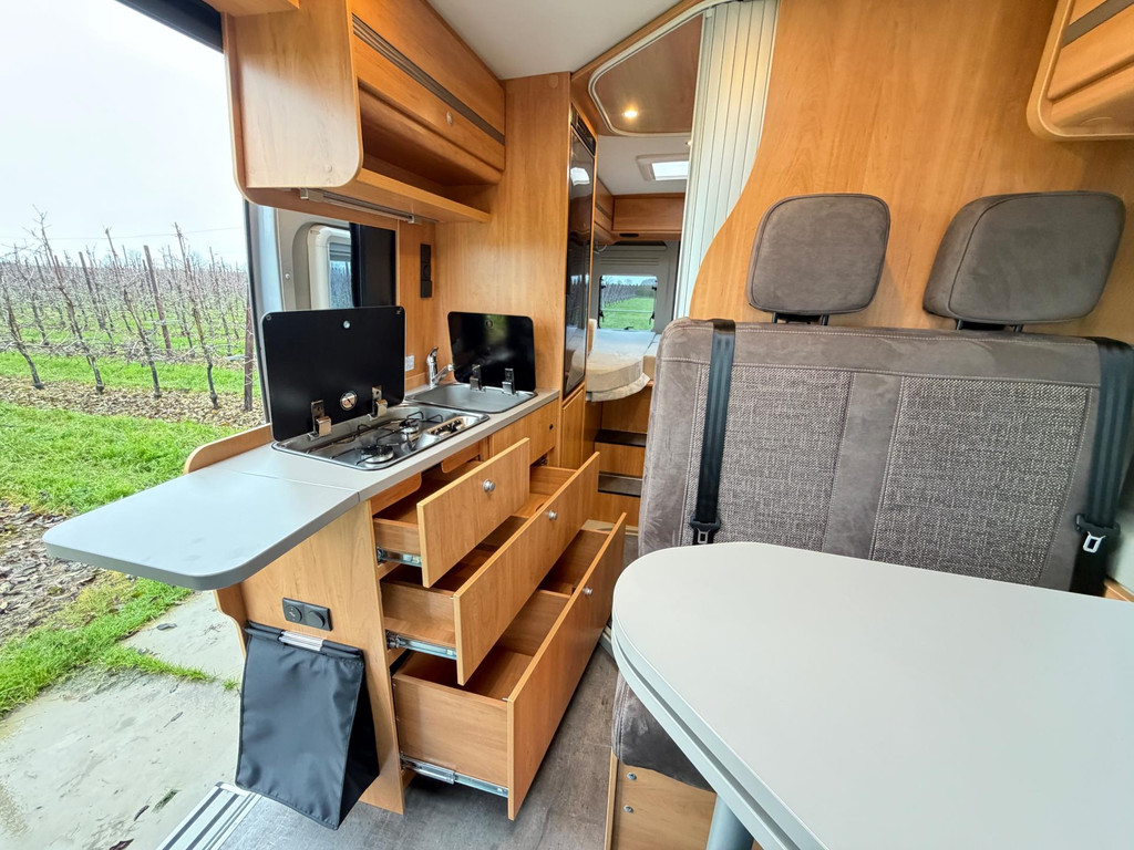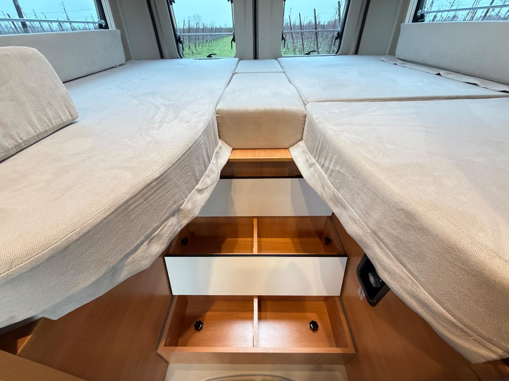 Uitrusting: ABS, ESP, enkel bedden, vast bed, navigatiesysteem, roetfilter, regensensor, stuurbekrachtiging, toilet, centrale vergrendeling