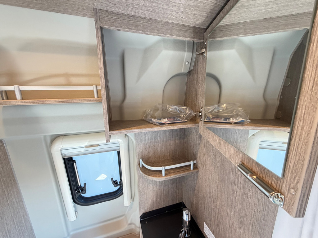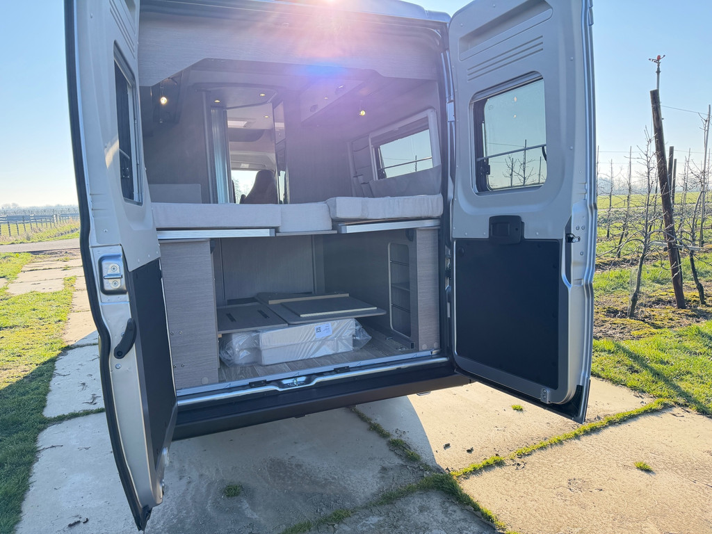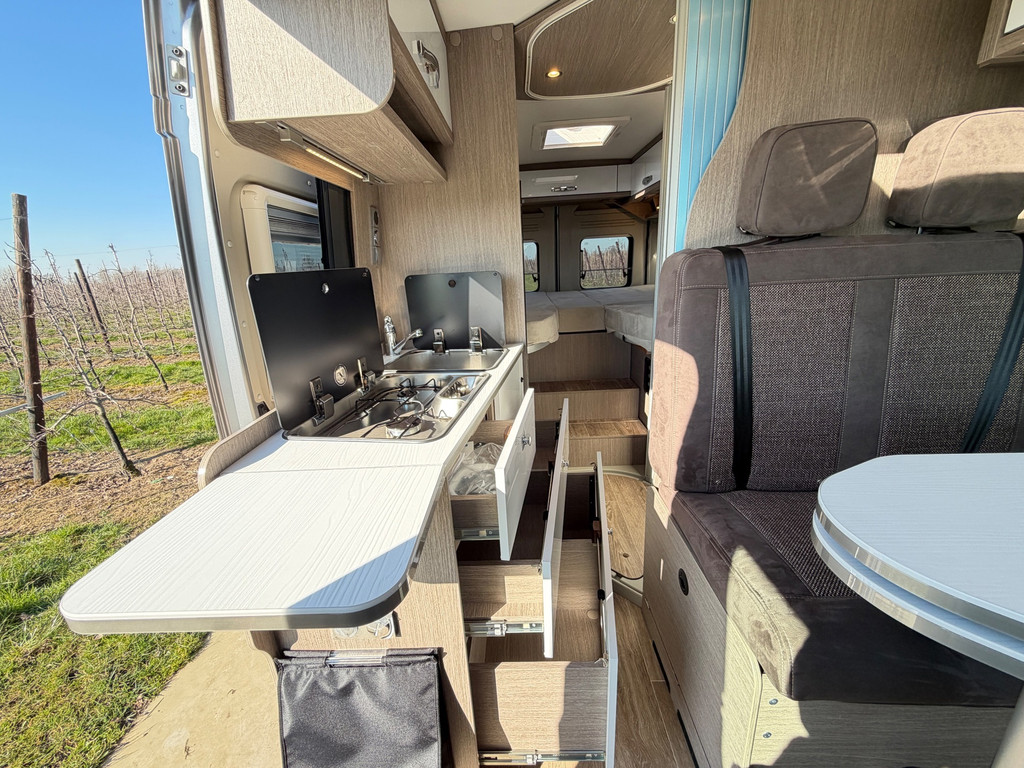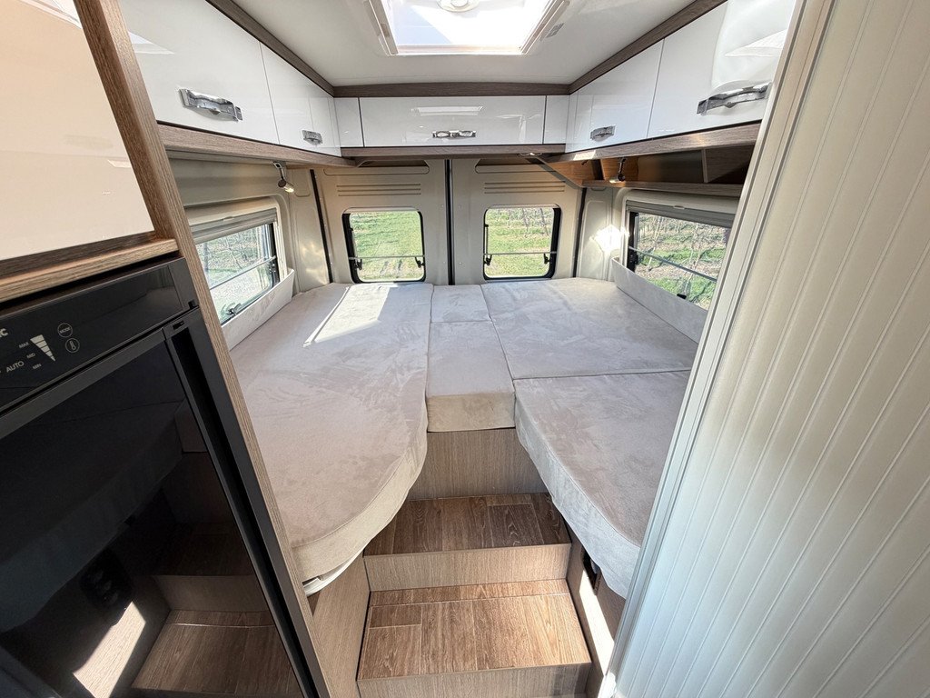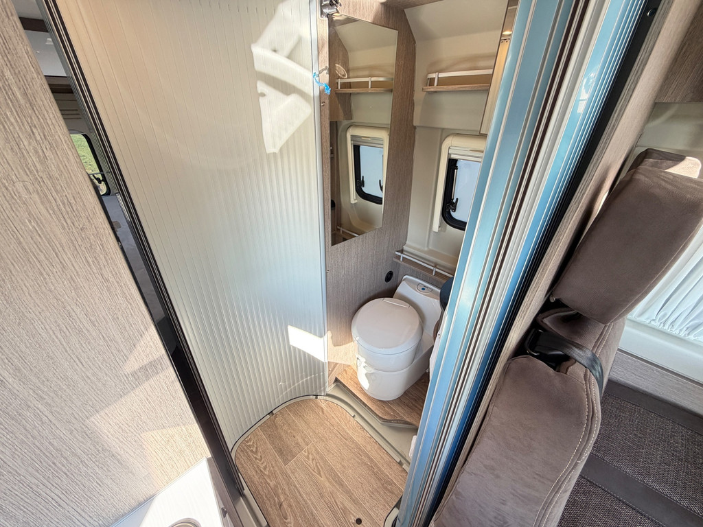 Uitrusting: Ombouwbare dinette, eenpersoonsbedden, lederen stuurwiel, lichtsensor, multifunctioneel stuurwiel, regensensor, toilet, centrale vergrendeling