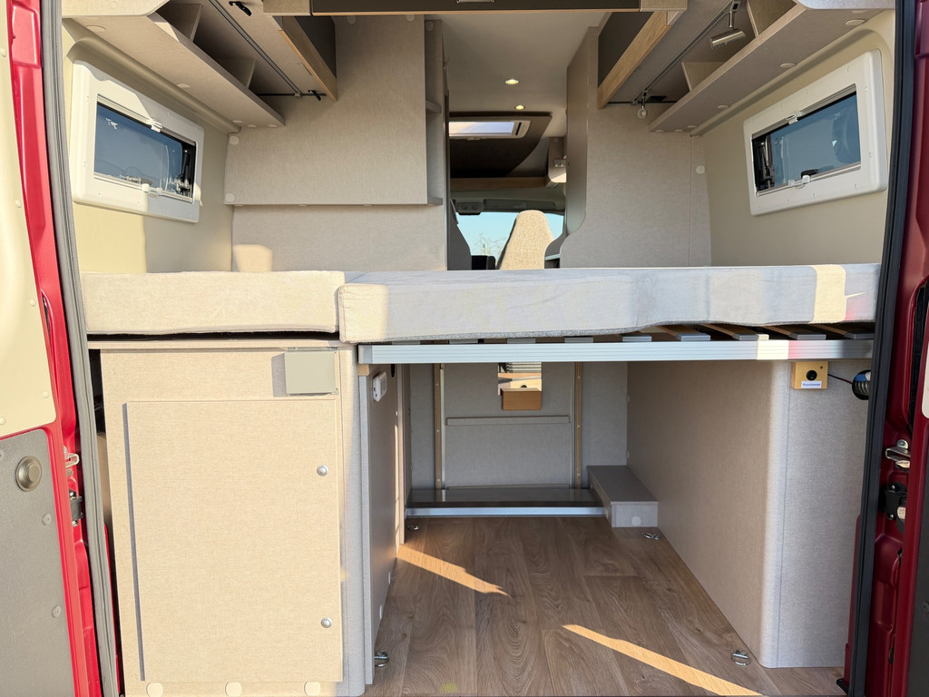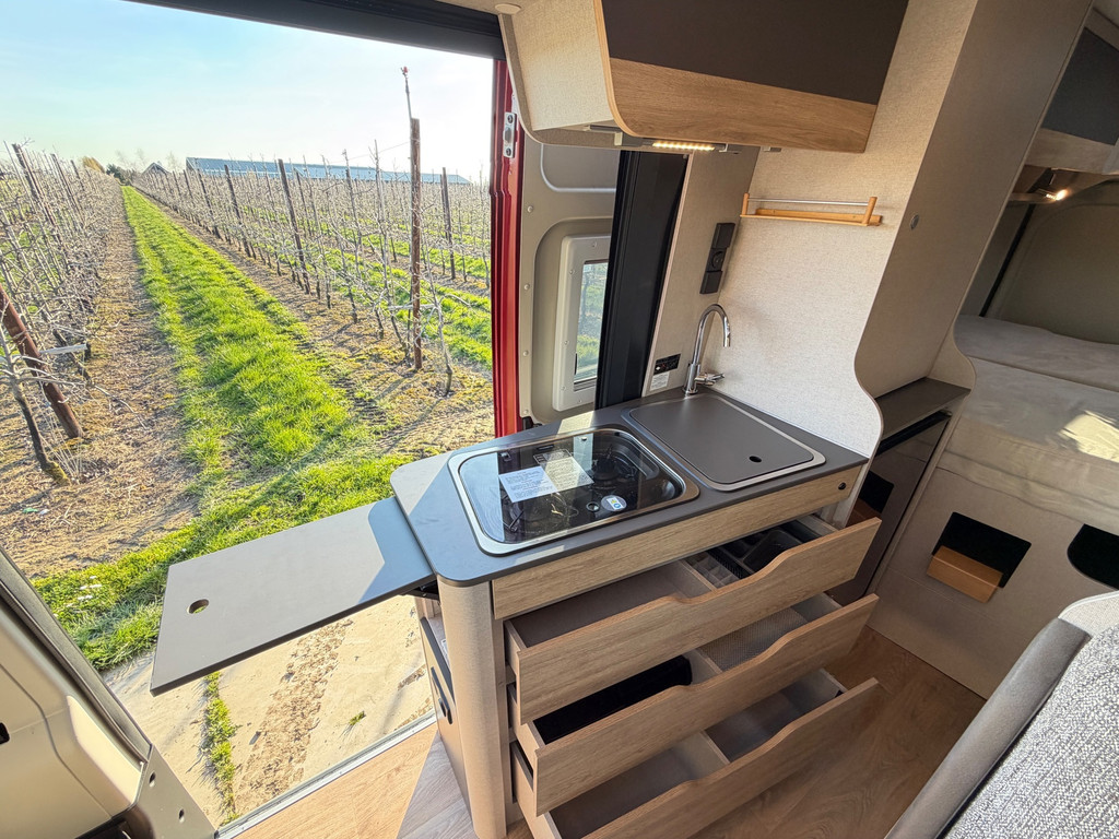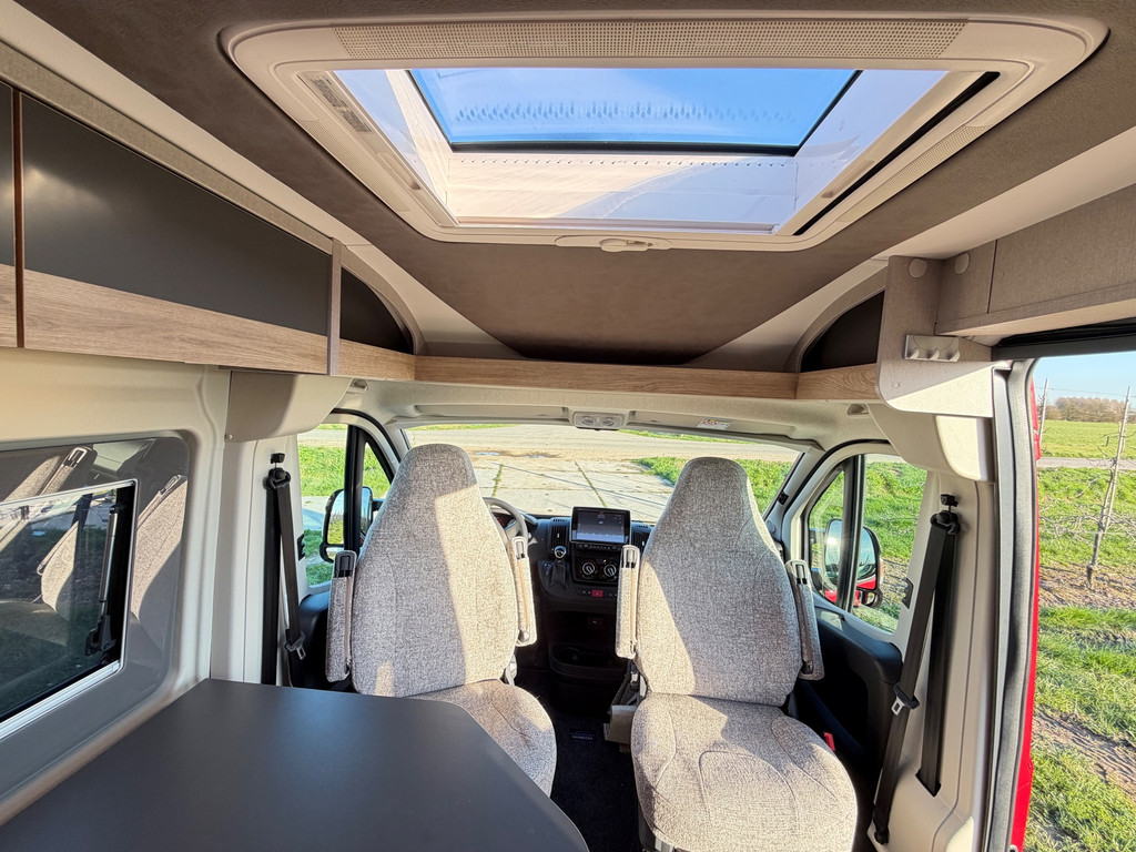 Globecar buscamper | 2021 | 9-traps automaat | 12.000 km | Elegance uitvoering | Maxi chassis | Rood metallic (Uniek) en 2 jaar garantie