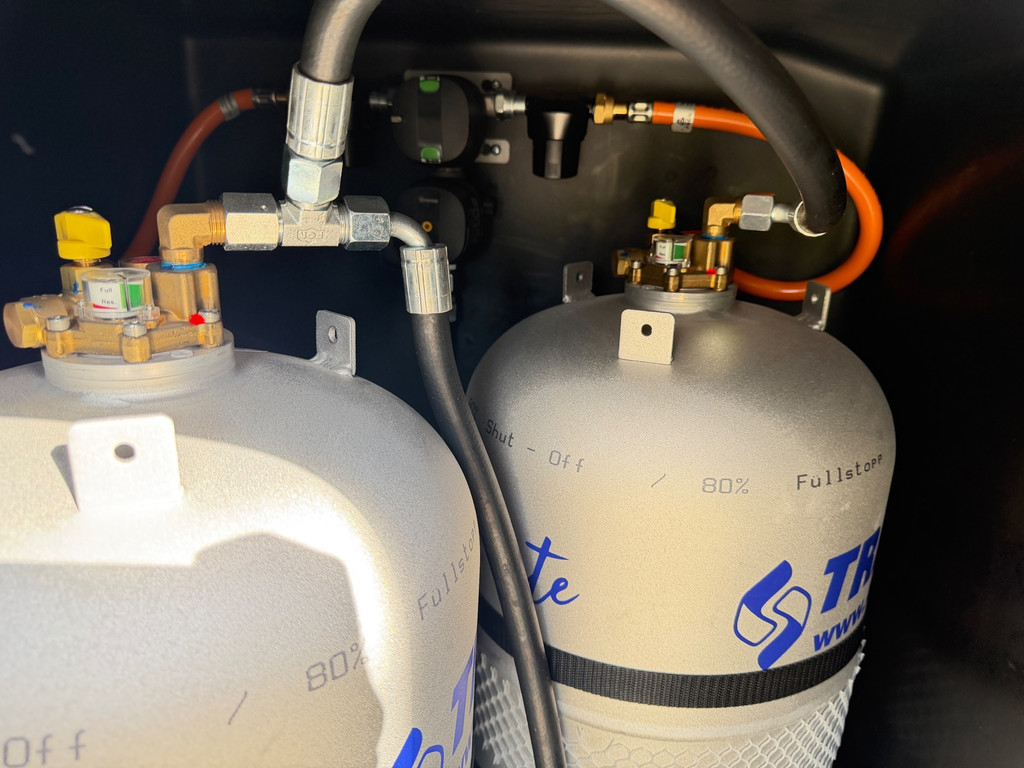 • LPG installatie (2 flessen) met buitenvuller, duo control, crashsensor en automatische omschakeling; nooit meer zware flessen wisselen.